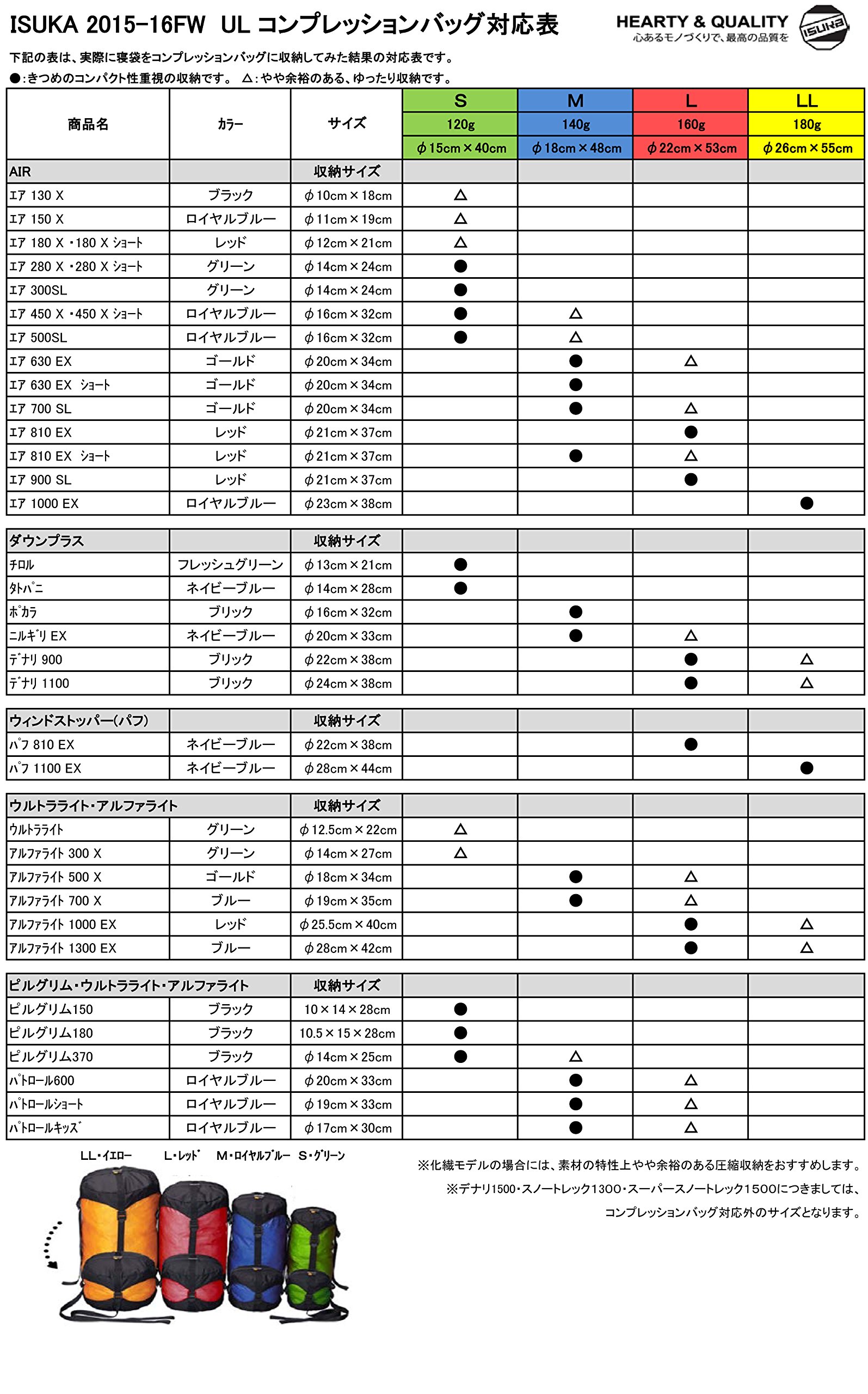 With the compression bag, it is possible to drastically compress bulky equipment such as sleeping bags and down jackets.