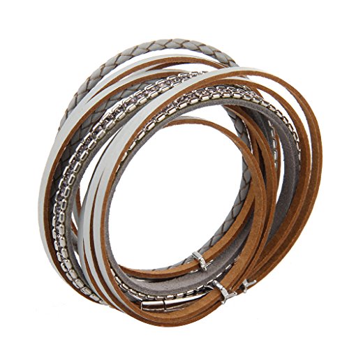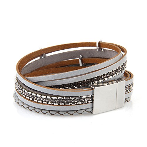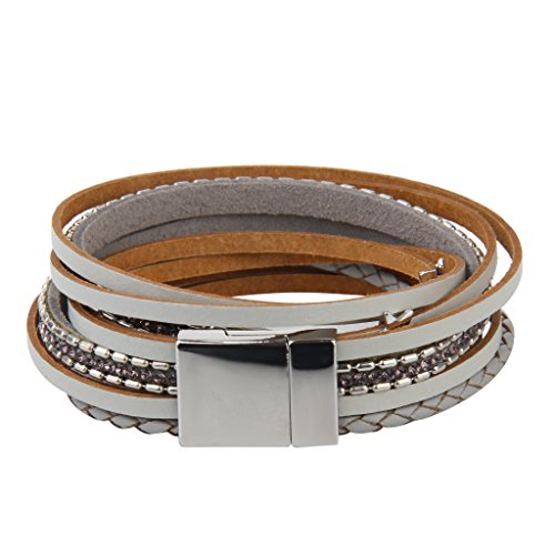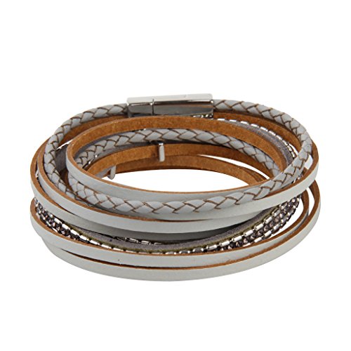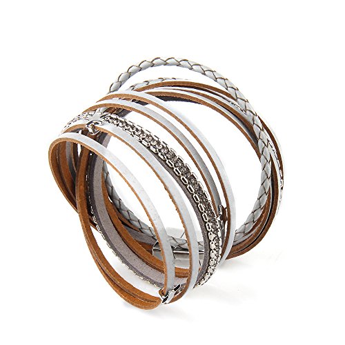 JENIA Braided Leather Bangle Bracelet Wristband Magnetic Clasp Bangle.