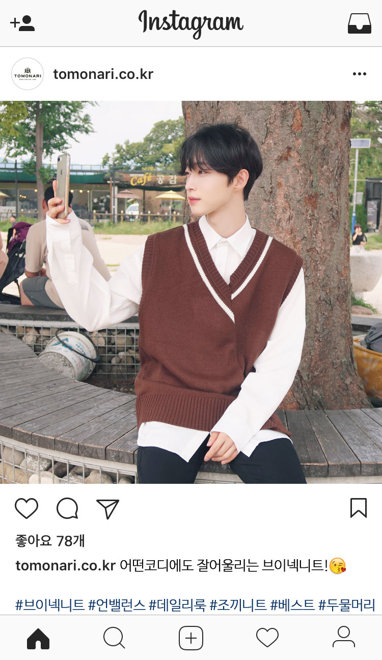 프레피한 분위기의 오버핏 니트 조끼입니다.FABRIC INFO
