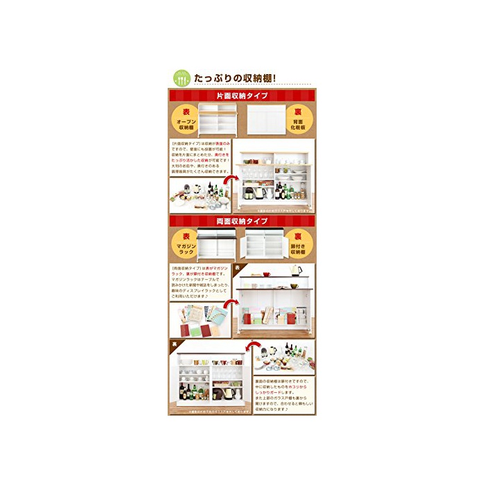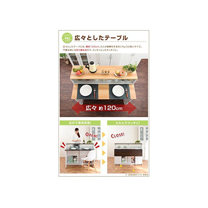 동경의 카운터 키친 으로 대변신!키친과 다이닝이 간막이하게 편리한 키친 카운터.수납은 물론,접이식 테이블 첨부 와 그래서 카운터에서 식사를 하거나,작업대로서도 이용 하실 수 있습니다.벽 첨부의 캐비넷으로서도 이용 주신다〔한 쪽 면〕타입과,문이 양쪽으로 열림가 되었다〔양면〕타입의 2종류를 준비.방 에 따라 좋아하는 타입을 선택해 주세요♪