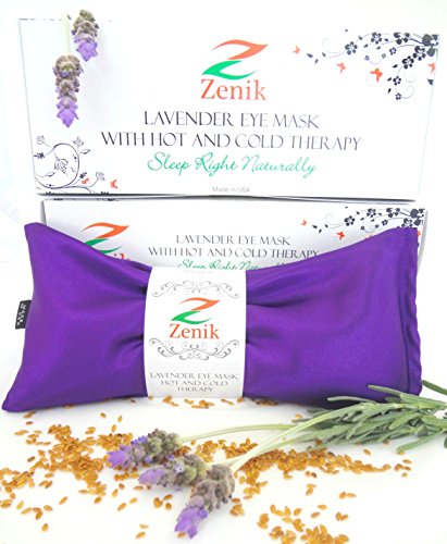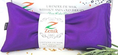 -. Binding : Misc. -. Brand : Zenik -. Color : Lavender -. EAN : 0784672486125 -. Feature : LAVENDER SCENTED EYE PILLOW - Soothing aromatherapy is an immediate stress reliever and relaxes all senses / USE IT AS HOT AND COLD EYE MASK - Helps with pain management for migraine, headaches and sinus headache. Great sleeping aid to help sleep soundly without the use of medication. / NATURAL AND ORGANIC - Lavender satin pillows are infused with natural lavender flowers and organic flax seeds. / COMPLETE DARKNESS - No light can peak through for ultimate calm and best sleeping experience / EASY AND CONVENIENT - Microwaveable and Freezer Safe for ease of use. 100% SATISFACTION GUARANTEED. -. Label : Zenik -. Manufacturer : Zenik -. Model : Z100EMP -. MPN : Z100EMP -. PackageQuantity : 1 -. PartNumber : Z100EMP -. ProductGroup : Beauty -. ProductTypeName : BEAUTY -. Publisher : Zenik -. Size : 8.4in x 4 in -. Studio : Zenik -. Title : Zenik Eye Mask for Sleeping - Lavender Eye Pillow Ideal for Sleep & Migraine Relief - Made in USA - Hot or Cold Therapy for Headache, Sinus Pain & Stress Relief. Feel Amazing in Just One Use - Gift Boxed! (Lavender) -. UPC : 784672486125