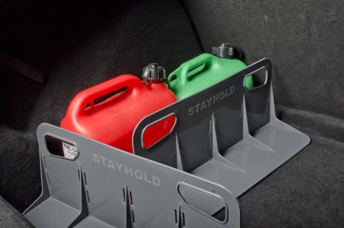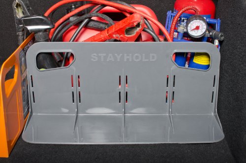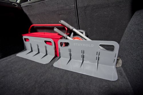 Stayholds are constructed of super strong plastic with hard gripping hook and look strips on the bottom. The strips adhere to standard carpeted trunk liners and floor mats, will not work with low pile or velour carpets found in some vehicles. If your carpet grips to the rough side of Velcro, the Stayhold will grip to your carpet. Stayhold works in over 90% of vehicles on the road. Position it as a divider anywhere you have carpet and your lose items will not shift. Never again hear the awful sound of items rolling around in the back of the car. It is great to use with groceries, plant pots, suitcases, tools, sports equipment, and many other loose items. Easily removable and can be repositioned anywhere in your trunk. To remove, grab top handle and pull to the edge in the same direction and the grip strips. Start experiencing peace of mind when traveling with goods in our trunk.