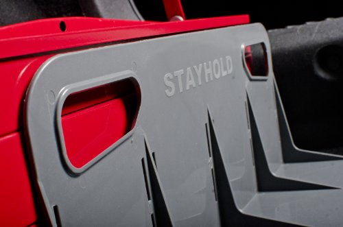 Stayholds are constructed of super strong plastic with hard gripping hook and loop strips on the bottom. The strips adhere to standard carpeted trunk liners and floor mats, will not work with low pile or velour carpets found in some vehicles.
