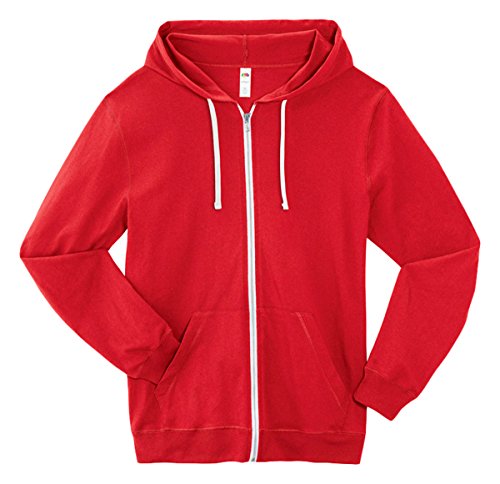 Product Description Fruit of the Loom jersey full-zip hood is made of 6.0 o 100 percent cotton that is pre-shrunk and ideal for layering. This versatile piece features an exposed zipper, a contrast draw cord, 1-ply hood, ribbed cuffs and waistband. 0