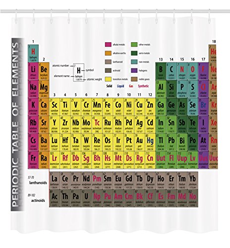 Periodic Table of Elements PHD Gifts Chemistry Student Modern Family Decor Science Lover Smart Educational Home Textile Design Fabric Shower Curtain - Yellow Green Blue Purple Fuchsia Brown