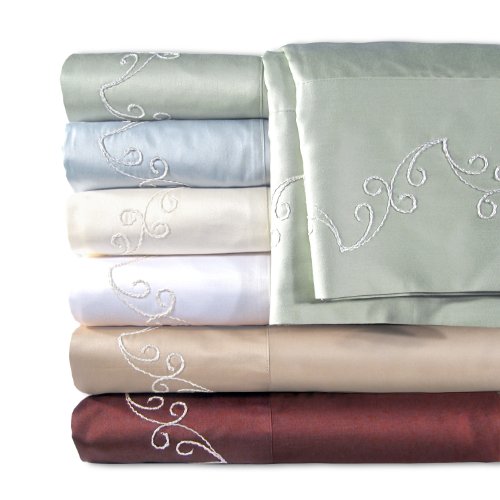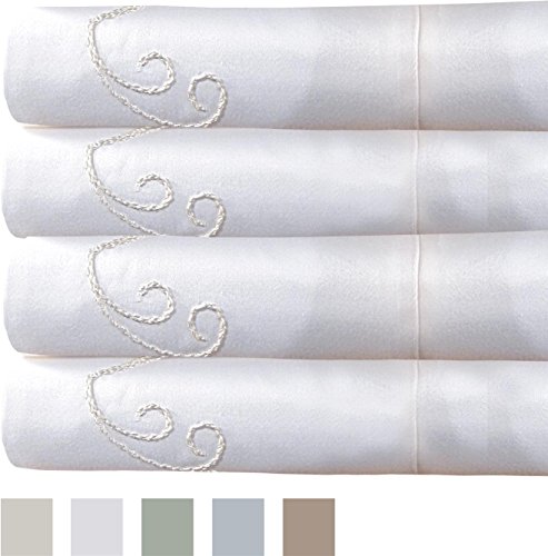 - ELEGANT AND CLASSIC: This Luxurious Bed Sheet Set is Crafted From Soft and Elegant, 100% Egyptian Cotton Sateen. The Flat Bed Sheets and Pillow Cases Feature a Fashionable and Classic, Embroidered Scroll Design.