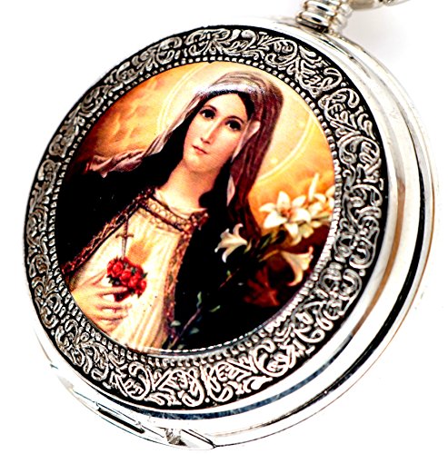 -. Feature : Catholic Blessed Virgin Mary Design Pocket Watch and Silver Pocket Watch Chain / High quality gives you a new classic definition. / Best gift to your lover, Partner, family, friends, classmates, colleagues Xmas gift / Japanes quartz movement pocket watch. / Comes with black gift box