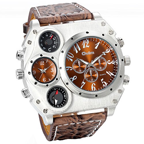 -. Binding : Watch -. Brand : Jewelrywe -. Department : Mens -. EAN : 6954847736223 -. Feature : Including one blue velvet bag P.R.Inted "JewelryWe" on it. / Material: Alloy and Leather. Dial Color: Brown / Band Length * Width: 10.8"(27.5cm)* 0.94"(2.4cm),Dial Diameter * Thickness:2.3"(5.8cm)*0.55"(1.1cm),Weight:110g / Note: compass,thermometer and three sub-dials in right big case just for decoration / This watch is much larger than normal, suit for bigger wrist. -. Label : JewelryWe -. Manufacturer : JewelryWe -. MPN : JW600005W -. PackageQuantity : 1 -. PartNumber : JW600005W -. ProductGroup : Watch -. ProductTypeName : WATCH -. Publisher : JewelryWe -. Studio : JewelryWe -. Title : Jewelrywe New Men's Military Style 2 Time Zones Dark Brown Leather Strap Quartz Wrist Watch Sports Wirstwatch