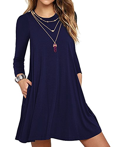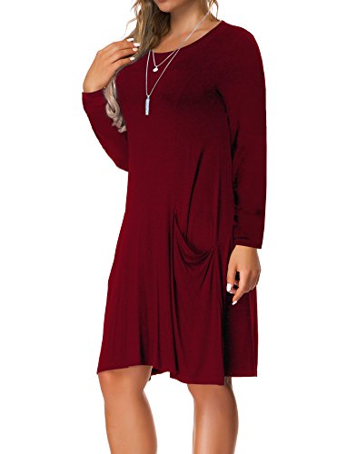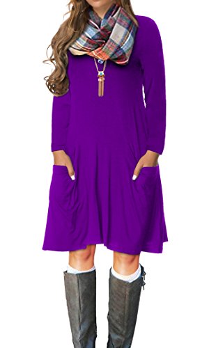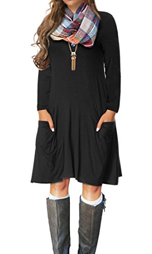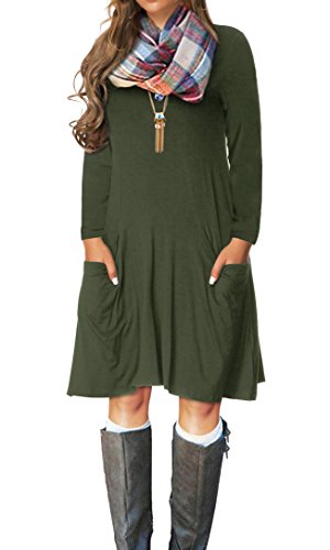 VERABENDI Women's Casual Long Sleeve Loose Pocket Dress