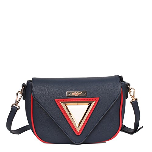 Nikky Women's Modern Classic Crossbody Gold Plate Design Cross Body Bag, Navy, One Size
