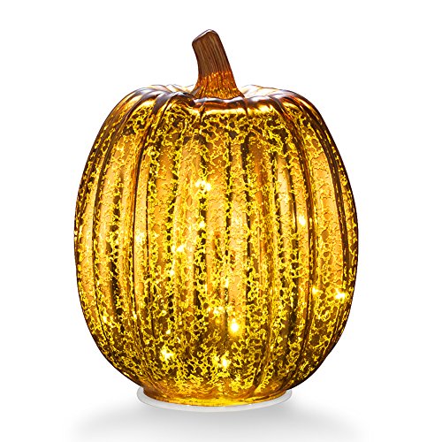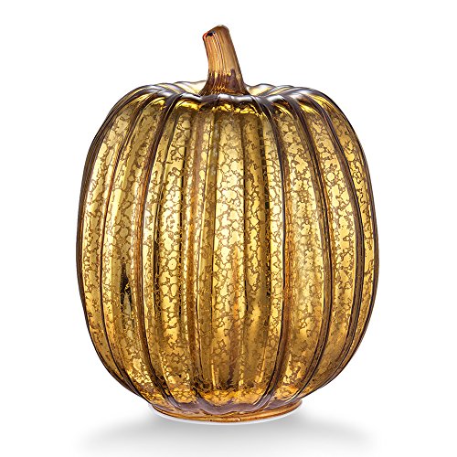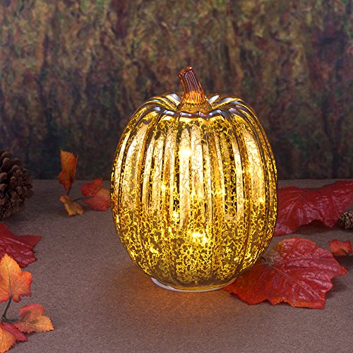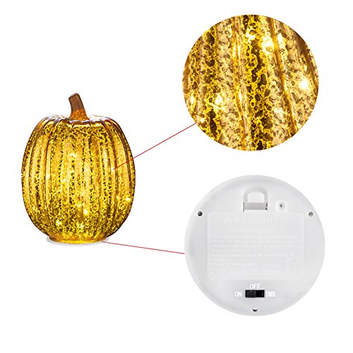 Mercury Glass Home Decor Accents, XY Decor 7.7" Battery Operated LED Pumpkin Lights with Timer for Fall, Thanksgiving and Halloween Decoration(Gold)