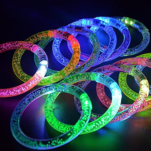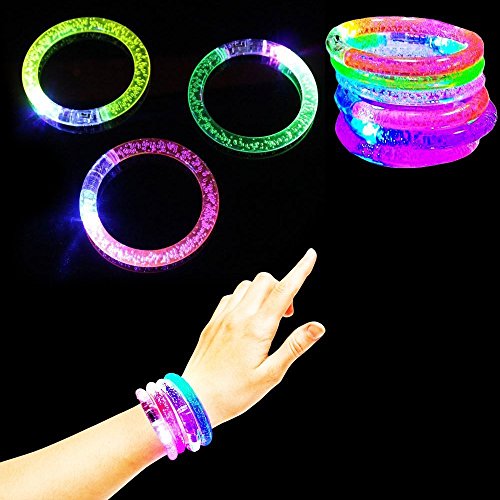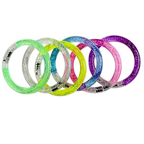 Studio : Flashing Panda Publisher : Flashing Panda Binding : Health and Beauty Product Description Flashing Panda's Fashion LED Bracelets are the hottest party accessory for ravers and party goers of all ages! This acrylic bracelet is lit up by a color-changing LED light, powered by 3 replaceable button batteries. The entire electronics piece can be popped out. These bracelets are bright, stylish and fun! Simple slide-switch operation. Will fit most children and adults as a bracelet and can also be used as an anklet with small legs. A great party bag filler. Outside diameter is 3.35", inside diameter is 2.5". 0