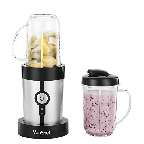 -. Title : VonShef 4 in 1 Multifunctional 1.5L Blender, 1L Smoothie Maker, Juicer, Grinder & Cups Silver