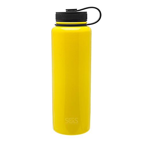 Large 40oz. Capacity, Double Wall Stainless Steel, Vacuum Insulated Copper Lined Thermal Bottle. Glossy Powder Coated Exterior Body Finish , Brushed Stainless Interior. Threaded Insluated Lid, with wide mouth opening for easy pouring, ice cube insertion and cleaning. For Hot or Cold Beverages. BPA Free