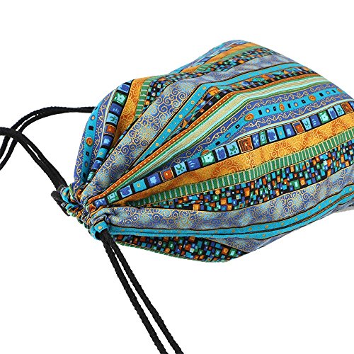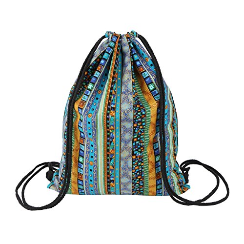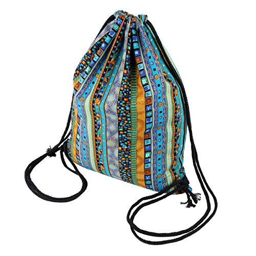 Cotton Canvas Drawstring Backpack, Lightweight Bohemia Hippie Bucket Bag,Both Side Available Gymsack,Ethnic Bags