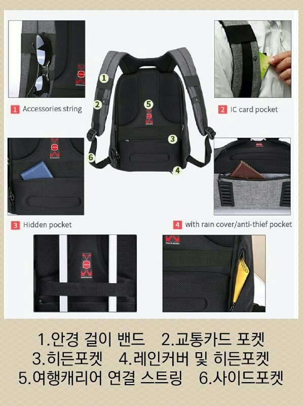 Argos backpack anti-theft usb laptop bag BIGINI man overseas travel daily