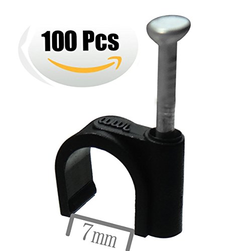 Mini Skater 7 mm Diameter Circle Ethernet Nylon Wire Cable Clips Clamps with Steel Nail , 100pcs/Pack(7mm,Black)