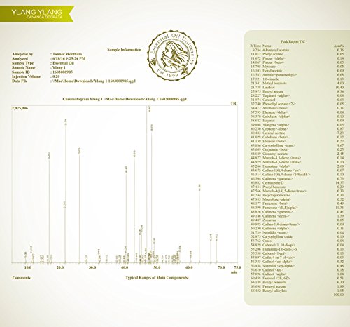 - STRICT QUALITY STANDARDS- Our therapeutic grade ylang ylang essential oils undergo rigorous testing to ensure they meet the highest standard for quality, purity, and medicinal potency. Our oils are GC/MS tested because we believe that man-made fillers and chemicals are not only unnecessary, they can be harmful to our bodies. See the science for yourself -- all lab reports are available on our website.