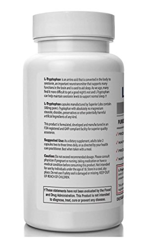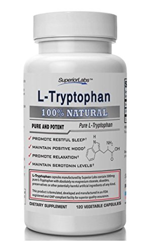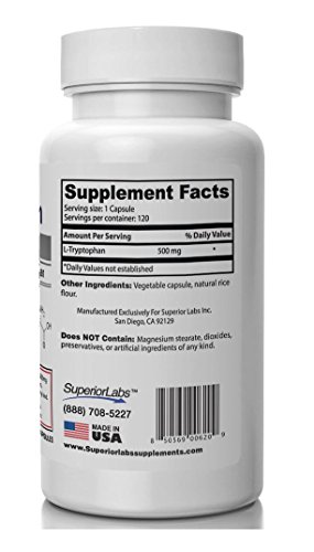Superior Labs L-Tryptophan Pure and Potent Dietary Supplement, 120-Vegetable Capsules