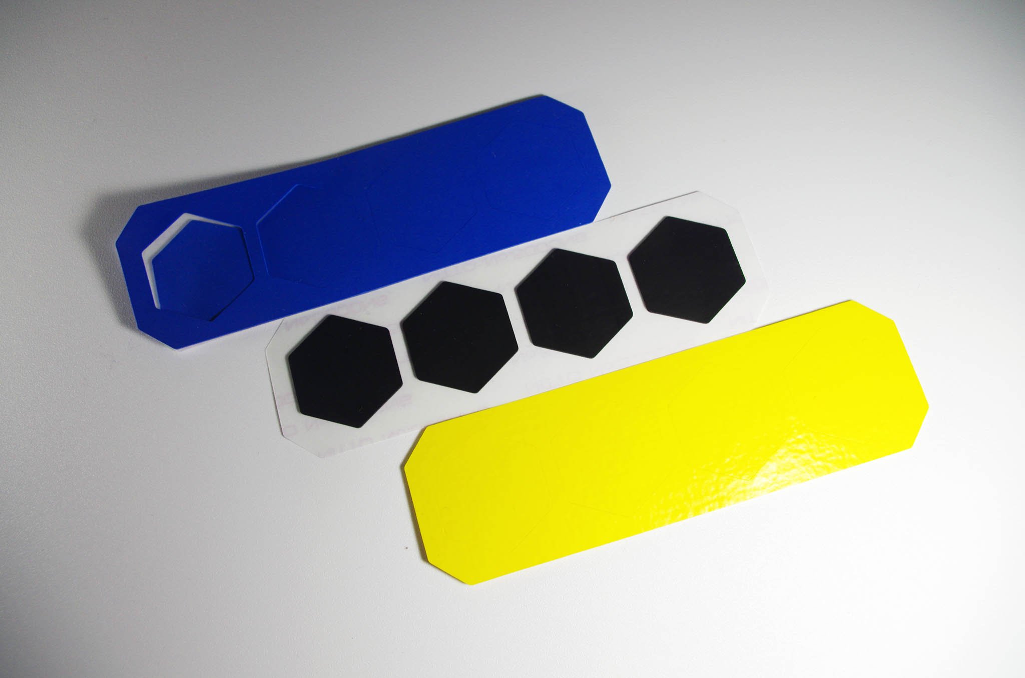 Put on laptop computer, keyboard etc to prevent misalignment.