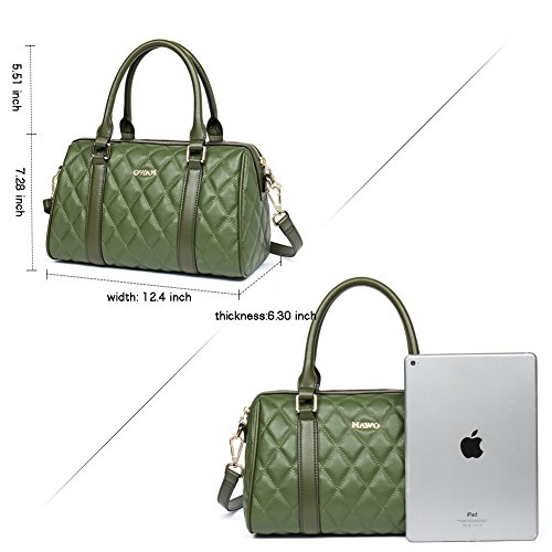 -. Feature : [MATERIALS] Cow Leather & Fabric Lining. Noble quilting. / [DIMENSIONS] (L) 12.4" x (W) 7.28" x (H) 6.29" inch / (L)31.5 x (W)18.5 x (H)16 cm / [INTERNAL STRUCTURE] This leather handbags contains 1 Big Pocket + 2 slip pocket + 1 internal zipped pocket. Large capacity designed, this bag comfortably holds an iPad, iPhone7Plus, wallet, cosmetic, and other daily things. / [FASHION FOCUS] We have 4 colors, all kind of colors are beautiful and stylish, you can choose any color you like. Hand made by professional artisans. Clear fashion texture, with simple styling, the handbag appearance concise and atmosphere, powerful at the same time. Fully lined interior includes inside pocket, detail stitching matches the bag color. / [ATTENTIONS] NAWO is an US Registered Trademark and our ONLY Authorized dealer is NAWO. Please pay attention to avoid purchasing those COUNTERFEITS from other sellers, 100% genuine guarantee from NAWO. Unauthorized sale without permission,we will investigated for legal responsibility.
