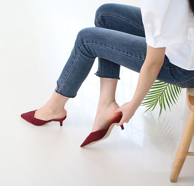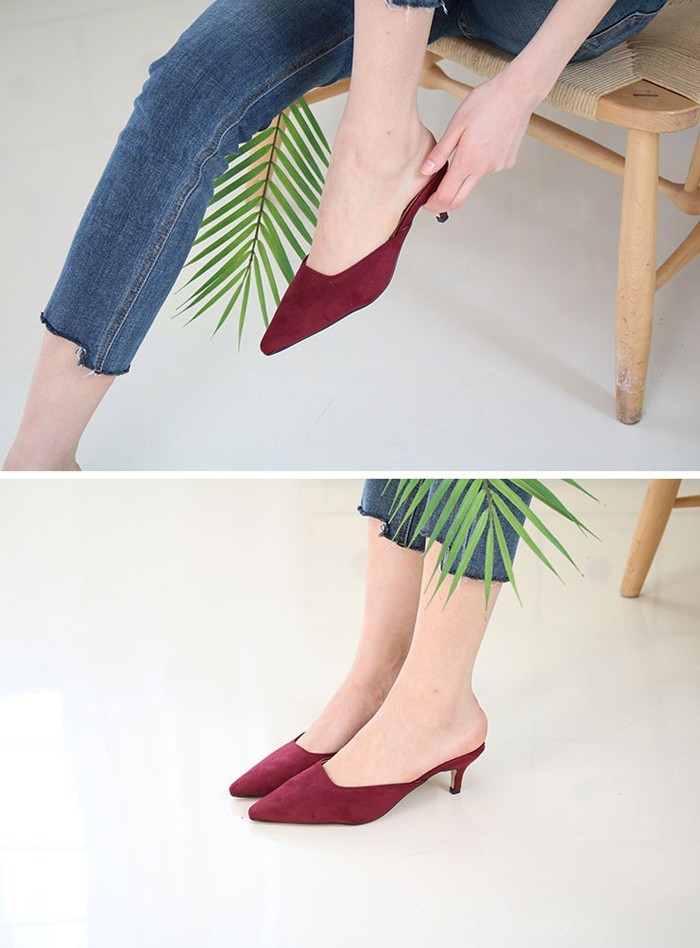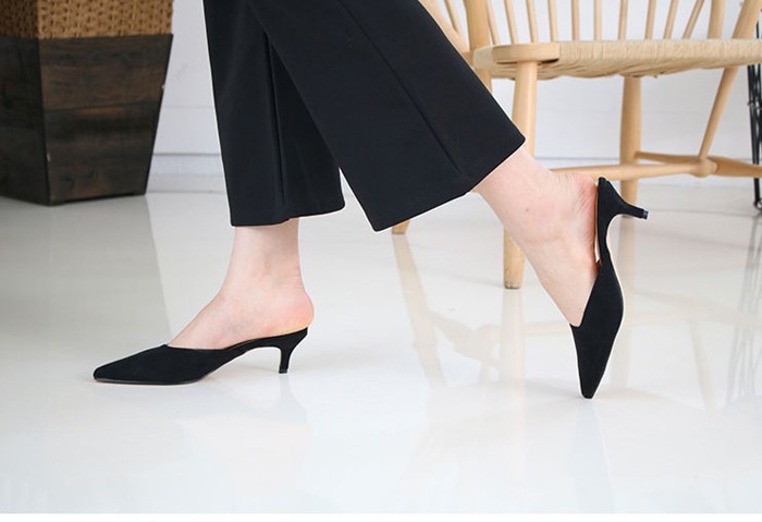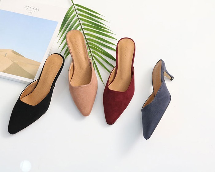 商品名:パンプス レディース ミュール スエード調 ポインテッドトゥ ピンヒール 2018 春 ファッション 靴 婦人靴
