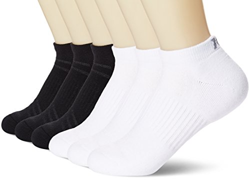 -. Feature : An Amazon brand / Six-pair pack of solid-color low-cut socks featuring ribbed cuff / Wicking fiber helps transfer sweat and moisture away from feet to fight odor and keep you cool / Padded heel and toe helps provide superior resistance and outstanding durability / Cushioning under foot helps absorb shock and reduce impact / Y-shaped heel