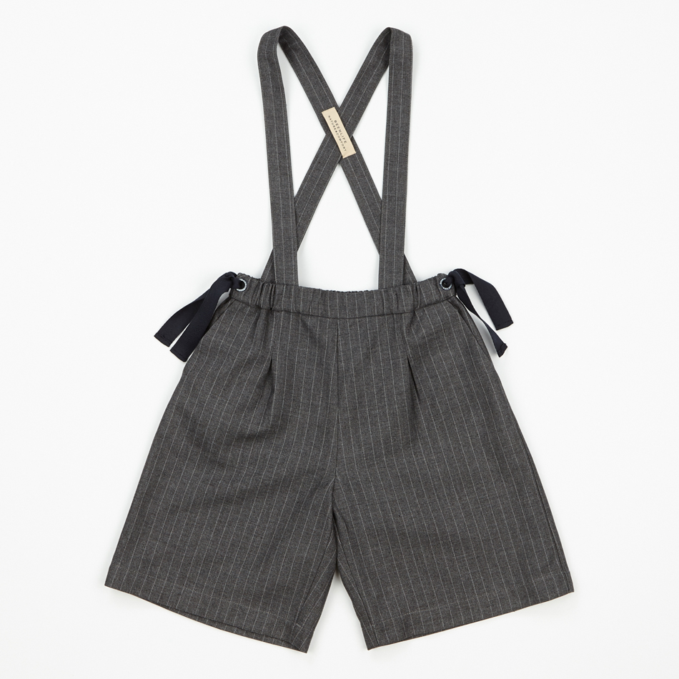그레이 스트라이프 컬러의 트랜디한 점퍼팬츠. 멜빨은 탈부착이 가능하여 다양한 스타일 연출이 가능하고 옆의 리본처리가 포인트가 되는 점퍼 팬츠 입니다. | ||||||||