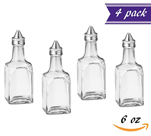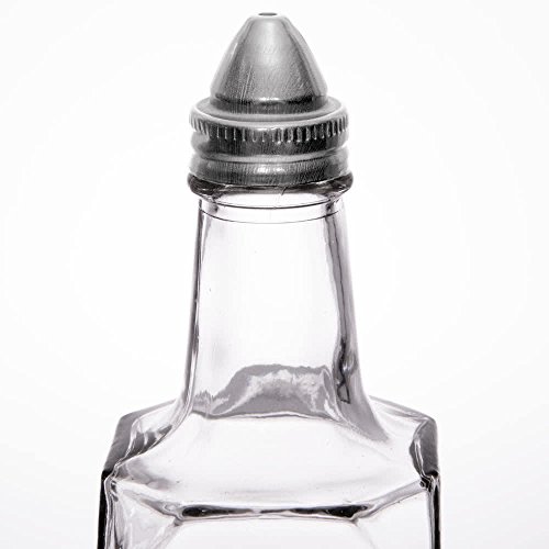 Product Description Supplement your tabletop display with this wonderful 6 ounces Oil and Vinegar Cruet with Pourer! Use this attractive spout to drizzle gourmet olive oil and flavored, house made dressing for salads or classic vinegar over green salads, tossed pasta, grilled vegetables, fresh greens and roasted meats, crispy fries. Sleek and attractive silhouette makes this salad dressing container perfect for table service and front-of-house display options. Slim profile will be comfortable for your guests to hold and use easily. Stylish and well crafted square glass construction will easily fit in with any dining establishment style. Our cruet features crystal-clear clarity ideal for enticing your customers to partake in its contents. Sturdy stainless steel pourer fits snugly in the bottle. The tapered spout ensures easy, yet controlled dispensing without creating a mess. 6 oz. capacity allows extended use with fewer refills, while the square glass construction ensures durability. If you love making and serving delicious foods and are looking for a perfect gadget to make your life easy, then search no further just click on Add to Cart Now to bring this essential tool to your kitchen! 0