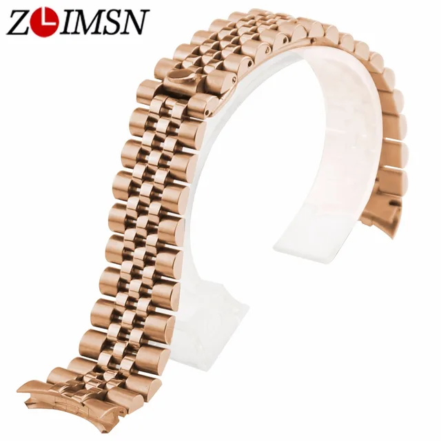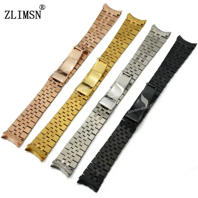 ZLIMSN 13 20 미리메터 316L Soild 스테인레스 스틸 배포 걸쇠 손목 곡선 끝 실버/블랙/골드/로즈 골드 시계 스트랩