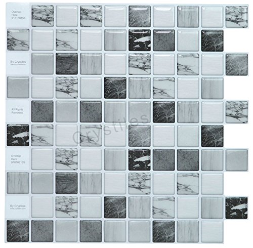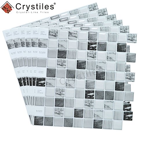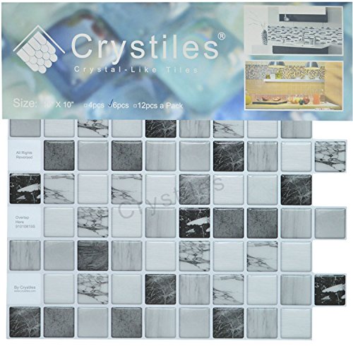 Crystiles peel and stick DIY backsplash tile stick-on vinyl wall tile, perfect backsplash idea for kitchen and bathroom décor projects, Item #91010815, 10” X 10” each, 6 sheets pack