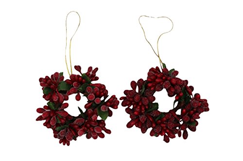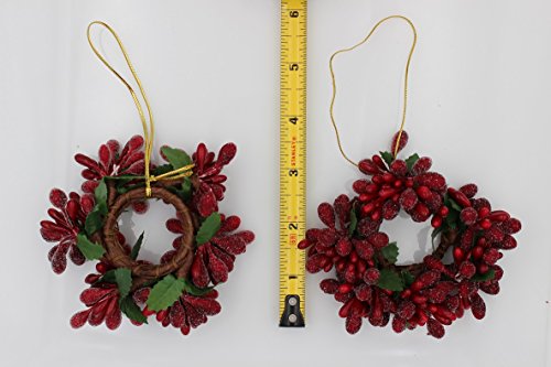 - Set of 2 (Two) 3-inch Beaded Berry Wreath Candlering Candle Ring Ornament Christmas Red