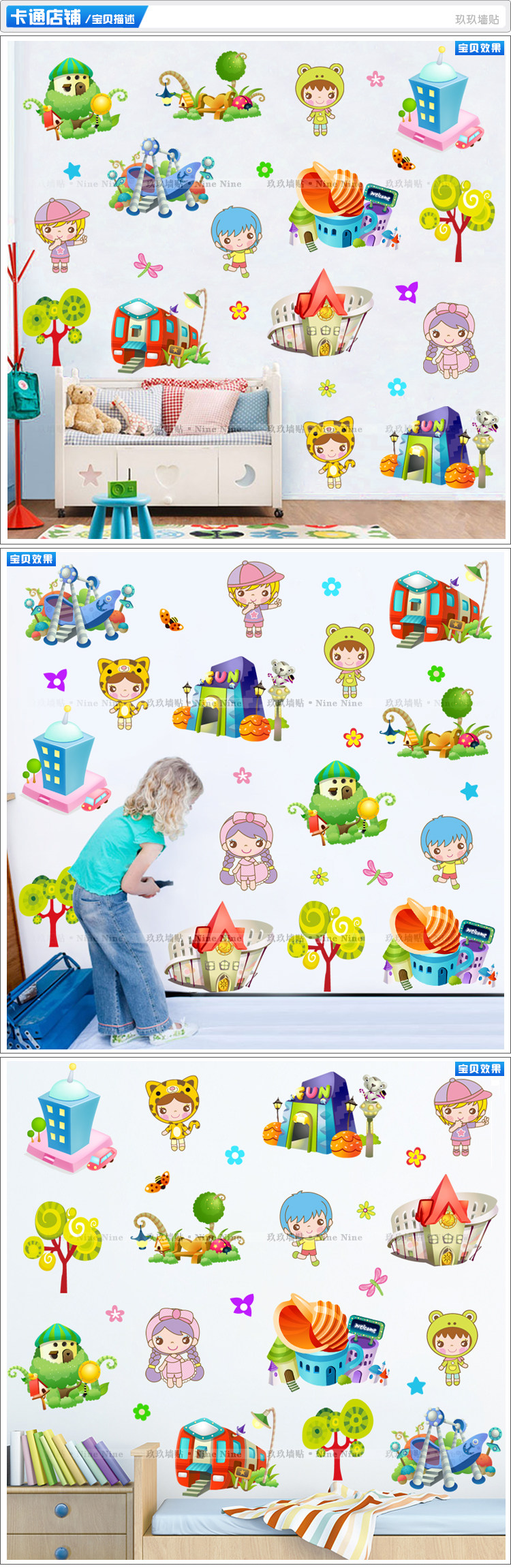 幼儿园托儿所墙面装饰墙贴可爱卡通创意思维房子建筑商店贴纸贴画