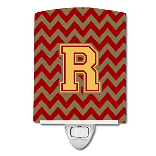 Caroline's Treasures Letter R Chevron Garnet and Gold Ceramic Night Light, 6 x 4", Multicolor