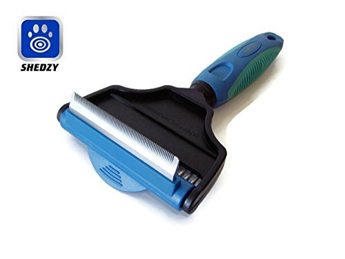 SHEDZY MAKES YOUR LIFE EASIER! Shedzy is a two-in-one grooming tool that not only removes and thins loose and matted hair from deep in your pet's undercoat but also with a flip of the patented top, it becomes a detangling rake that fluffs up, shines the coat and massages the follicle.