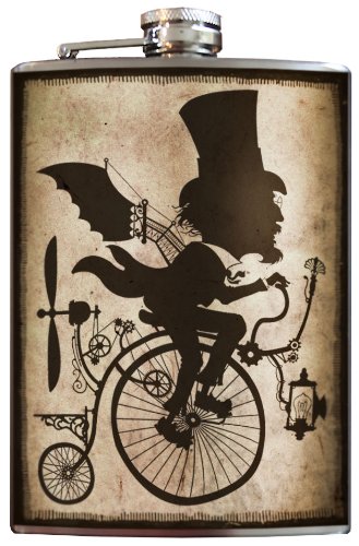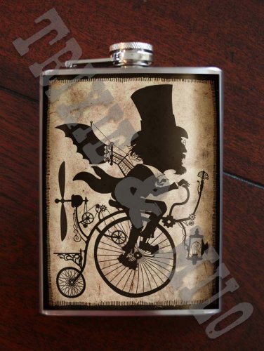 This silhouette is from my original series dedicated to the inventors of Steampunk. This gentleman is "Inventor #1". A sip from this flask will provide refreshing inspiration for all your crazy ideas. Drink with style... Custom art on a stainless steel hip flask. How cool is that? Created by the artists, Trixie & Milo. These flasks are slim enough to fit in your hip pocket or purse, and stylish enough to show to all your friends! Makes an awesome gift for weddings, bridesmaids, groomsmen, or just birthdays, anniversaries, or the holidays. A perfect fashion accessory! Quality is our highest priority. All our designs are printed on a high quality vinyl label that is completely water proof (and alcohol proof). Each sticker is laminated under a UV resistant finish that will protect and enhance the image. These labels are NOT made with paper, or modge podge. Check out these features: High quality stainless steel construction. Attached screw down cap. Measurements; 3.75" x 5.75" Holds 8 oz. of fluid (yummie!) Image is protected by several layers of protective lamination. This means it will last a long time! Ships in a handy gift box, perfect for wrapping and ready to gift. To clean, just wipe it down with a damp cloth & dry. Not dishwasher safe. P.S. Actual alcohol is NOT included (sorry). You must provide your own beverage. This is for the flask only... All artwork is copyrighted and property of the artists, "Trixie & Milo".