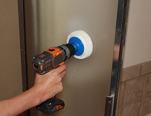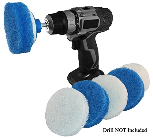 -. Feature : Clean 5X faster and more effectively by letting your drill do the work (DRILL NOT INCLUDED) / Universal steel shaft works with ANY drill / Perfect for cleaning showers, bathtubs, sinks, tile, grout and more! / 4-inch diameter oversized flexible scrub pads can be attached from either side to the velcro backing pad, to double the life of your scrub pads / 7 piece kit includes velcro backing pad with shaft and 6 non-scratch nylon scrub pads