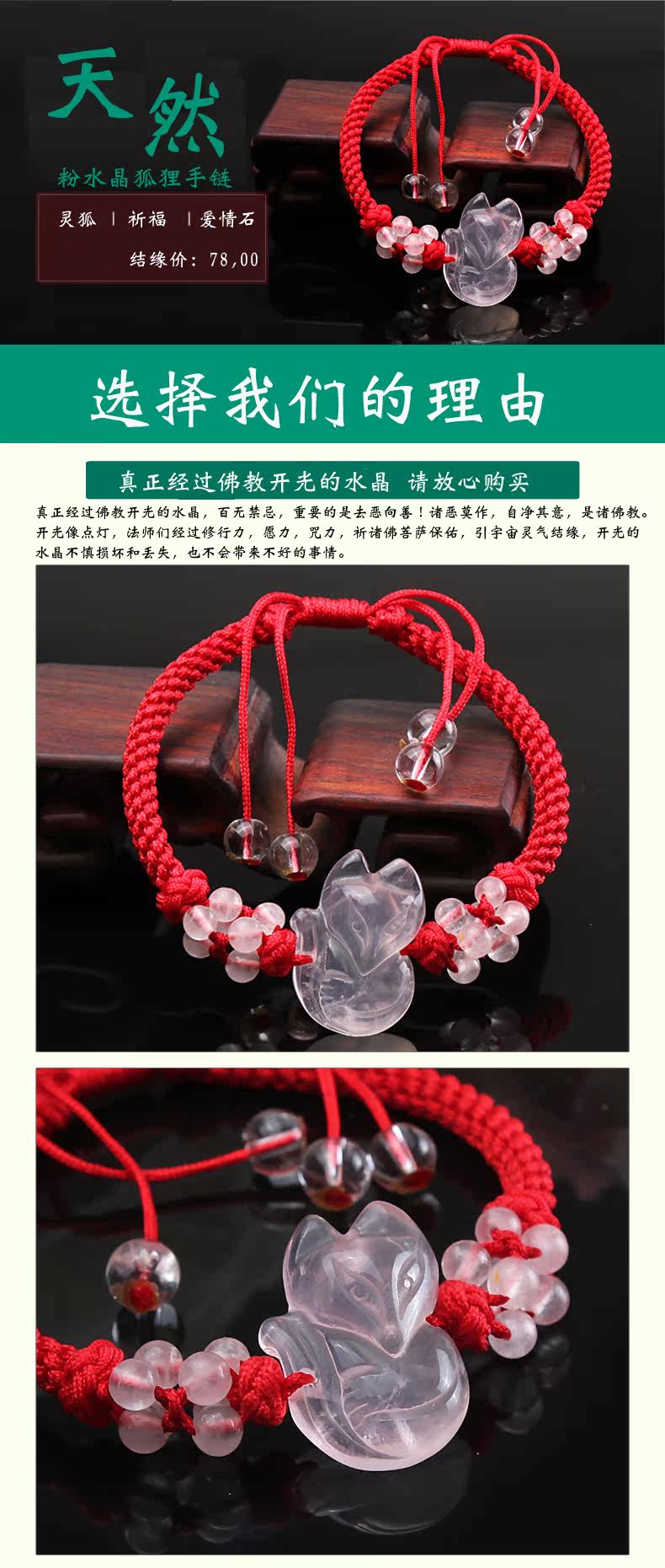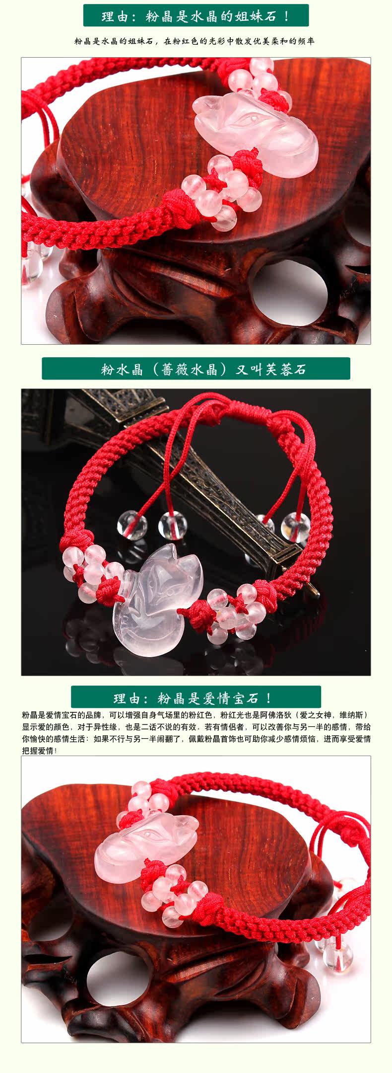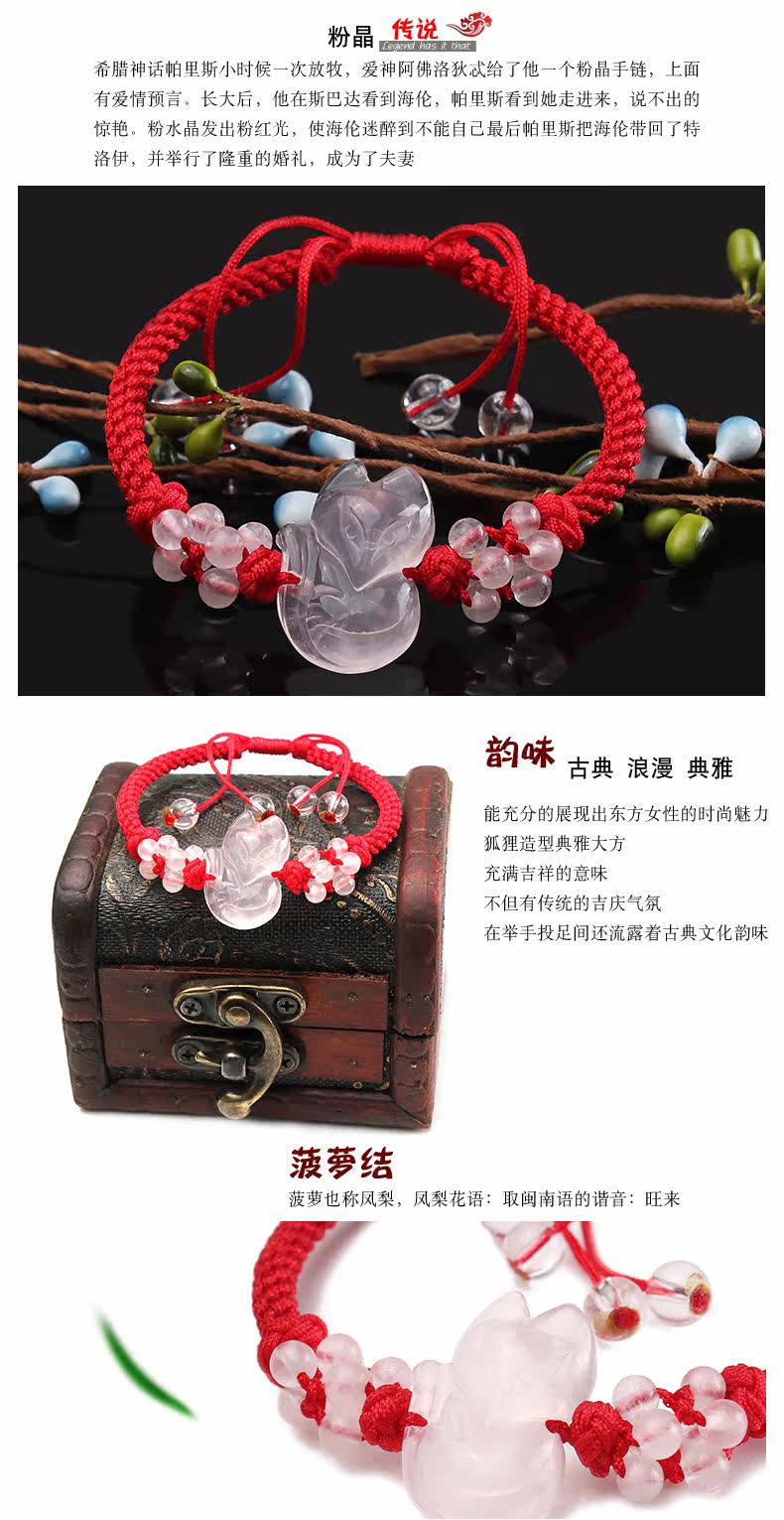 开光天然粉水晶狐狸手链女款开运手串饰品饰品狐狸七夕礼物