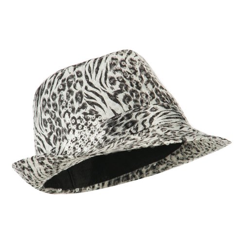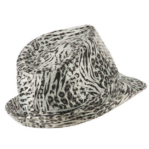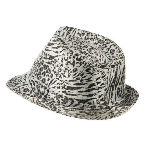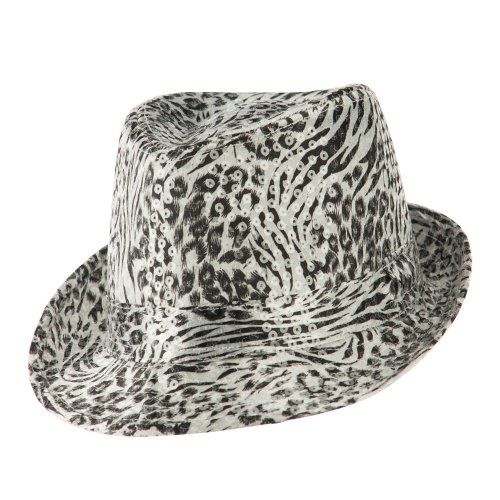 -. Title : Fedora with Animal Print and Sequins Design - White