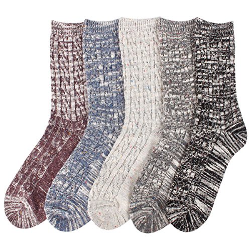 Women's 5 Pack Fashion Warm Thick Crew Knitted Cotton Winter Socks AD
