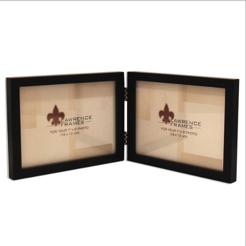 -. Binding : Kitchen -. Brand : Lawrence Frames -. Color : Black -. Department : Accent -. EAN : 0751148055581 -. Feature : Contemporary black wood frame that will compliment any décor / Constructed of wood with a satin black painted finish; includes high quality black backing / A classic studio frame design also available in many other sizes / Wipe clean with dry cloth / Holds two 5-Inch by 7-Inch photos (horizontal); overall dimensions 14.38-Inch by 5.63-Inch by 1-1/4-Inch -. Label : Lawrence Frames -. Manufacturer : Lawrence Frames -. Model : 755575D -. MPN : 755575D -. NumberOfItems : 1 -. PackageQuantity : 1 -. PartNumber : 755575D -. ProductGroup : Home -. ProductTypeName : HOME -. ProductTypeSubcategory : other-professional-frames -. Publisher : Lawrence Frames -. Size : 5 by 7-Inch -. Studio : Lawrence Frames -. Title : Lawrence Frames Hinged Double (Horizontal) Black Wood Picture Frame, Gallery Collection, 5 by 7-Inch -. UPC : 751148055581 -. Warranty : parts
