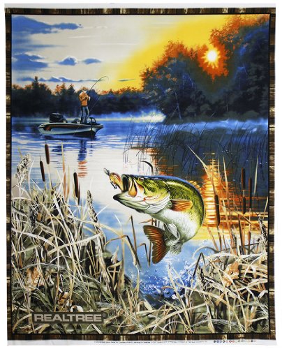 REAL TREE COTTON FISHING PANEL BY SYKEL-REAL TREE TROUT PANEL-SOLD BY THE PANEL