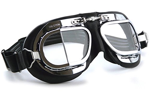 -. Title : Halcyon Mk49 Black Leather Classic Motorcycle Compact Goggles/Classic Flying Goggles