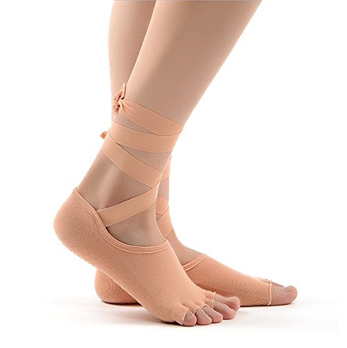 -. Feature : UNIQUE BALLET STYLE DESIGN get the elastic silk ribbon yoga socks with non-slip sole from heel to toe for IMRROVED STABILITY&BALANCE. The elegant bands design will make you look unique in the class / DESIGNED FOR YOUR PRACTICE ideal to wear during yoga and pilates while traveling, at the studio or at home. Also perfect as dance socks for belly and ballet dancers / FRESHNESS & BREATHABILITY thanks to the open foot, half toe design made of 92%cotton 6%polyester 2%spandex, giving you comfortable bare-foot feeling / INCREASED FLEXIBILITY and promoted blood circulation for your toes thanks to the 5 toe design separating each toe into its own space, hygienic protect that helps prevent foot fungus and contact with outher bacterial or unclean surface / 100% SATISFACTION GUARANTEED. We want to ensure that you are 100% happy with the product. If not, you can either return it or get a replacement at no cost within 30 days.