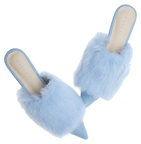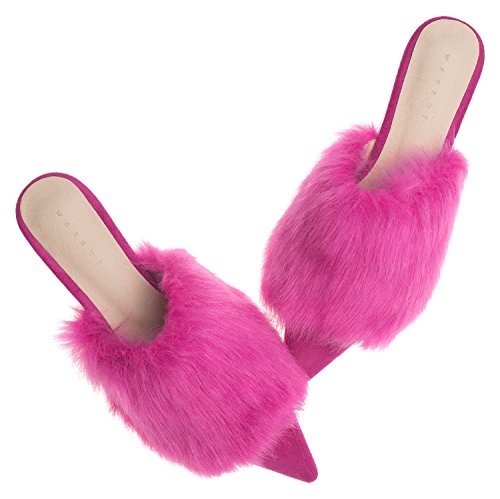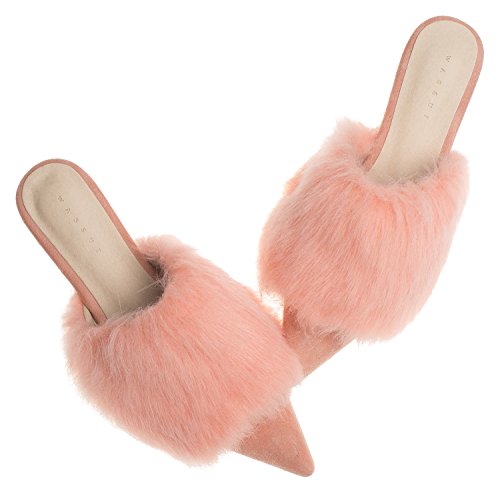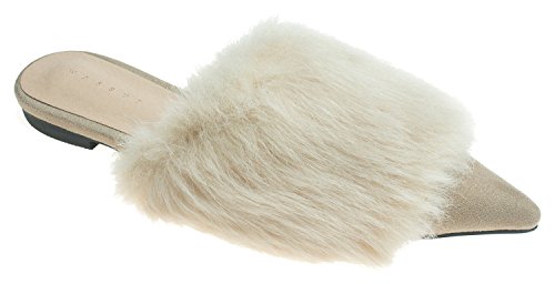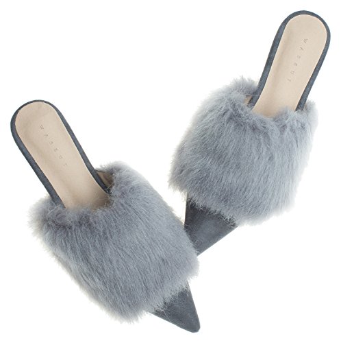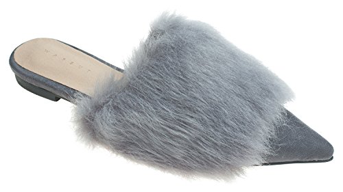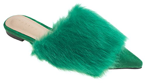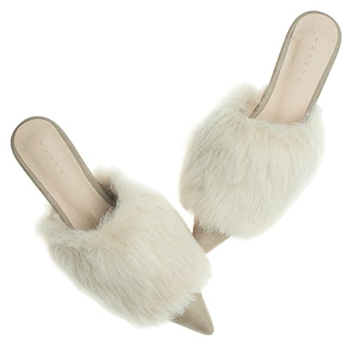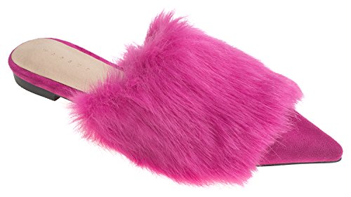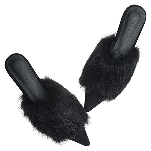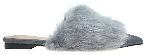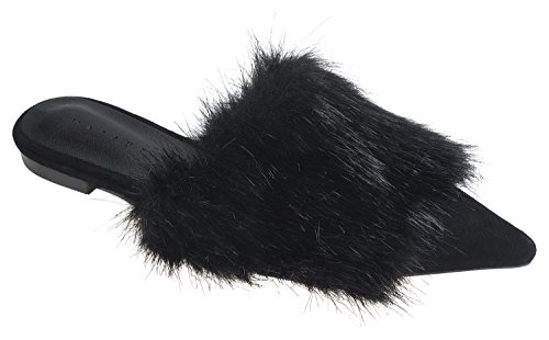 | (AnnaKastle)/Women's/Mules Clogs/DIRECT FROM USA/AnnaKastle Womens Pointy Toe Faux Fur Mule Dress Flats Fashion Slide |
