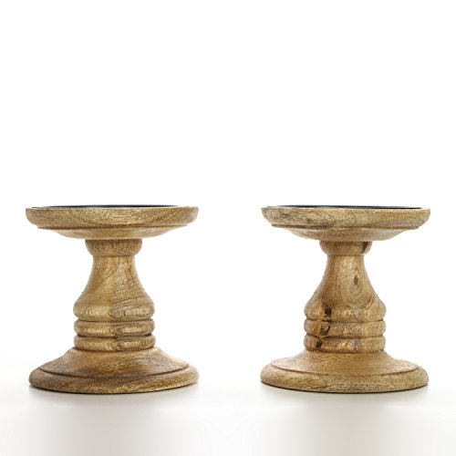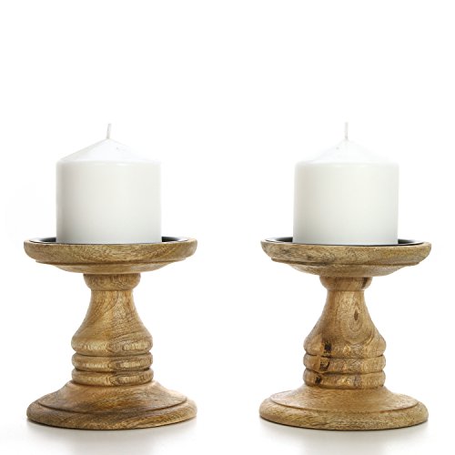 Product Description Hosley's Set of 2 Natural Wood Pillar Holders - 5" High. Ideal for home, for weddings, spa and aromatherapy settings, or as a gift. 0