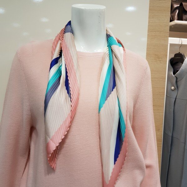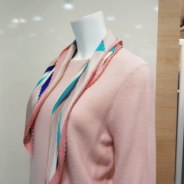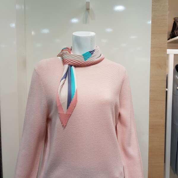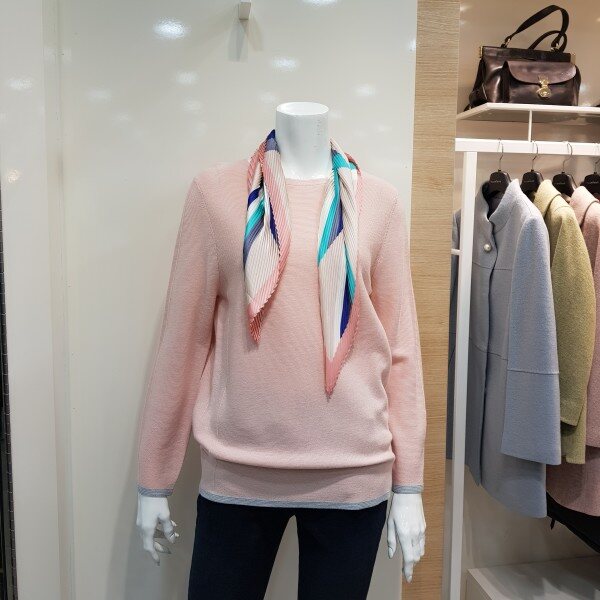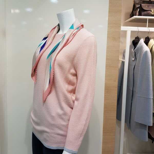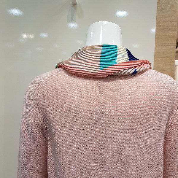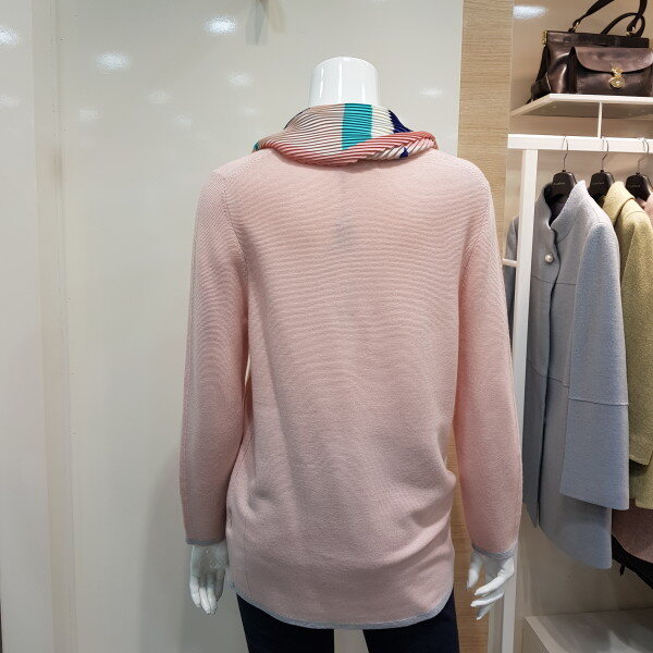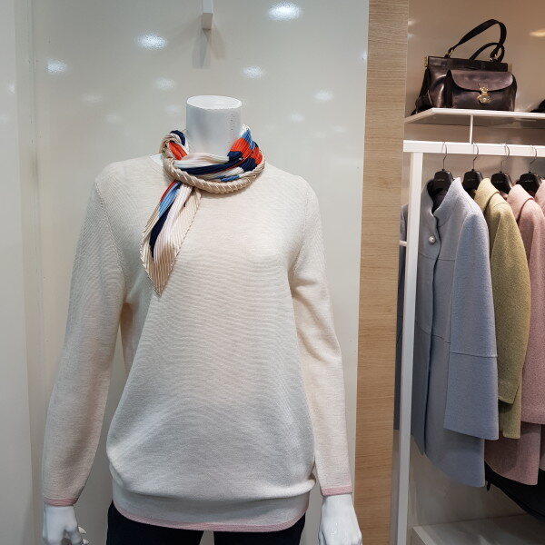 스카프 탈부착 가능한 라운드 니트 티셔츠입니다.
