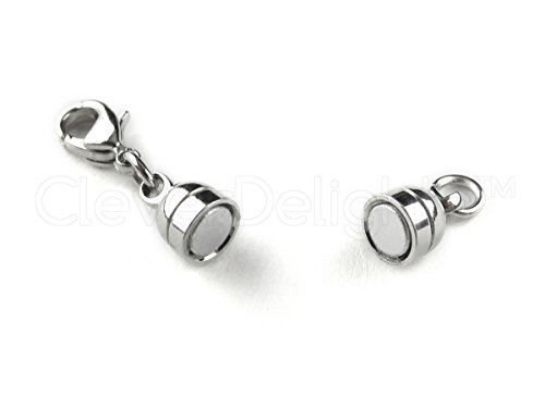 8 CleverDelights Magnetic Jewelry Clasps - Capsule Style + Lobster Clasp - Silver Color - Clasp Converter