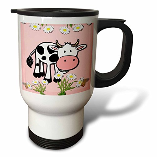 3dRose tm_218426_1 Cute Cow Pink Kids Decor Popular Print Best Seller Travel Mug, 14 oz, White