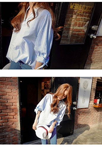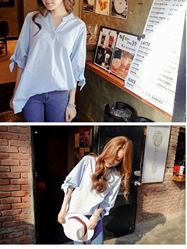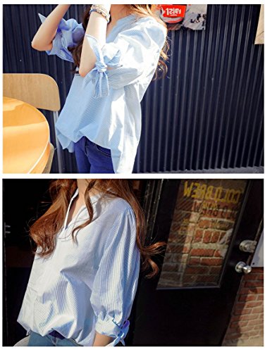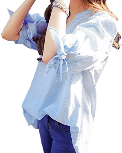 -. Feature : 袖口のリボンがかわいいストライプシャツです!ライトブルーのストライプが涼しげです。 / 大人っぽいスマートなシャツスタイルながらも袖口のリボンとゆるいシルエットでかっちりしすぎない抜け感がかわいいです。 / Vネックはシャープな縦のラインを強調し、首を細く魅せる効果があります。 / ボトムスは7分丈、ロングパンツ、レギンスパンツのほかワイドパンツ、スカンツもカジュアルでいいですよ。 / 【サイズ】S:袖丈36cm 胸まわり92cm 着丈70cm M:袖丈36.5cm 胸まわり96cm 着丈71cm L:袖丈37cm 胸まわり100cm 着丈72cm LL(XL):袖丈38cm 胸まわり104cm 着丈73cm 3L(2XL):袖丈38.5cm 胸まわり108cm 着丈74cm 4L(3XL):袖丈39cm 胸まわり112cm 着丈75cm ※海外製品の為、ワンサイズ小さめです。1~2cmの誤差がありますのでご了承ください。Amazonが迅速に発送致します。